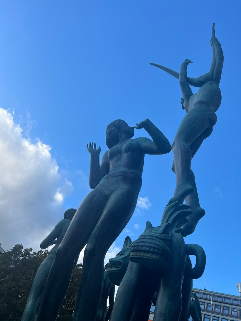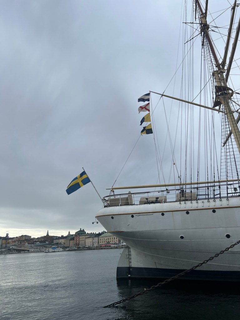 Cardamom bun and a flat white fried herring, pickled onions, sweet mustard, and dill on toastKid’s subway entry trackAs a long time fan of mental health and true crime, I was excited to see the former bank in Norrmalmstorg Square. 27,623 steps in Stockholm. Love my Hokas.